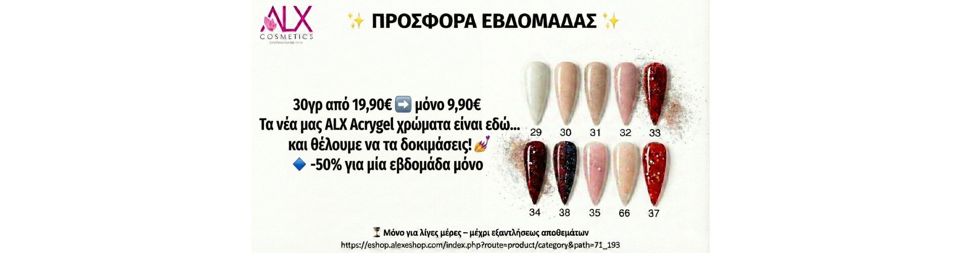 ALX Acrygel 033 Ruby Sparkle 30 γρ.